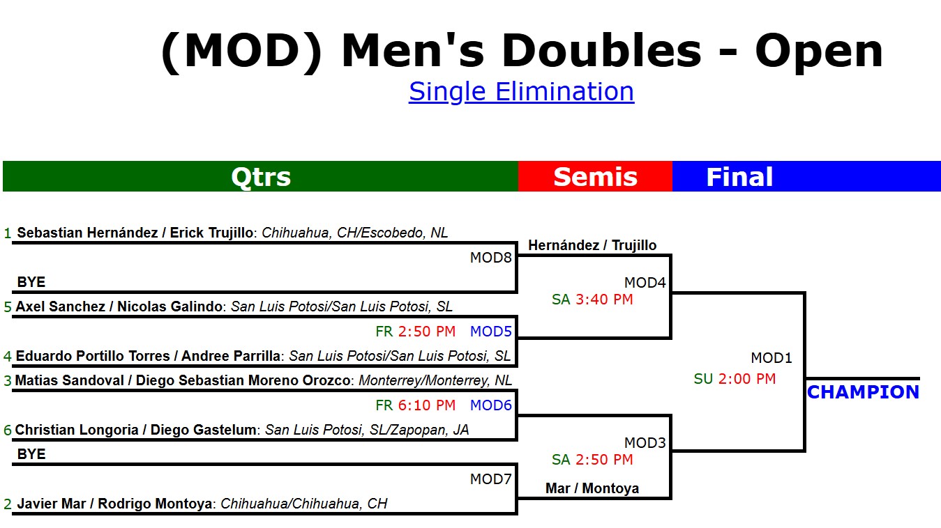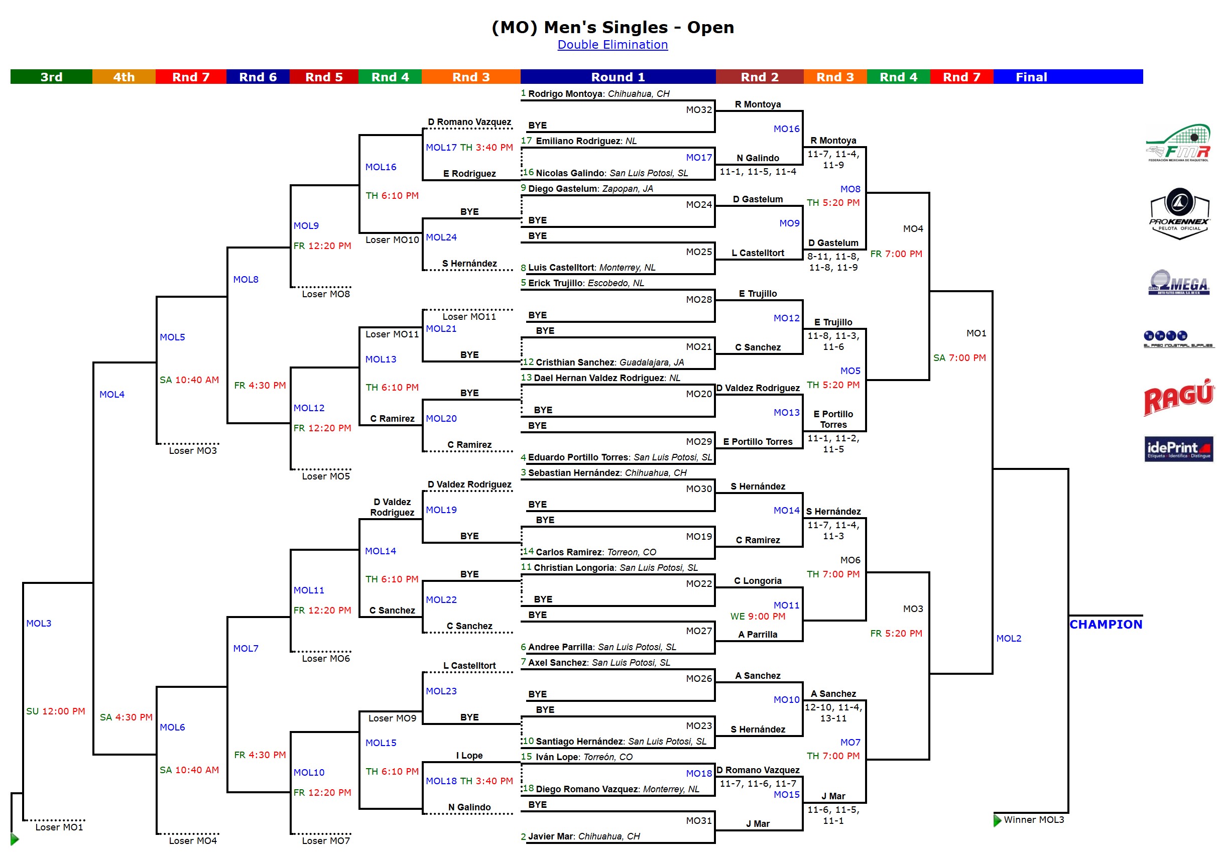 Sanctioned: Yes. Federación Mexicana de Raquetbol