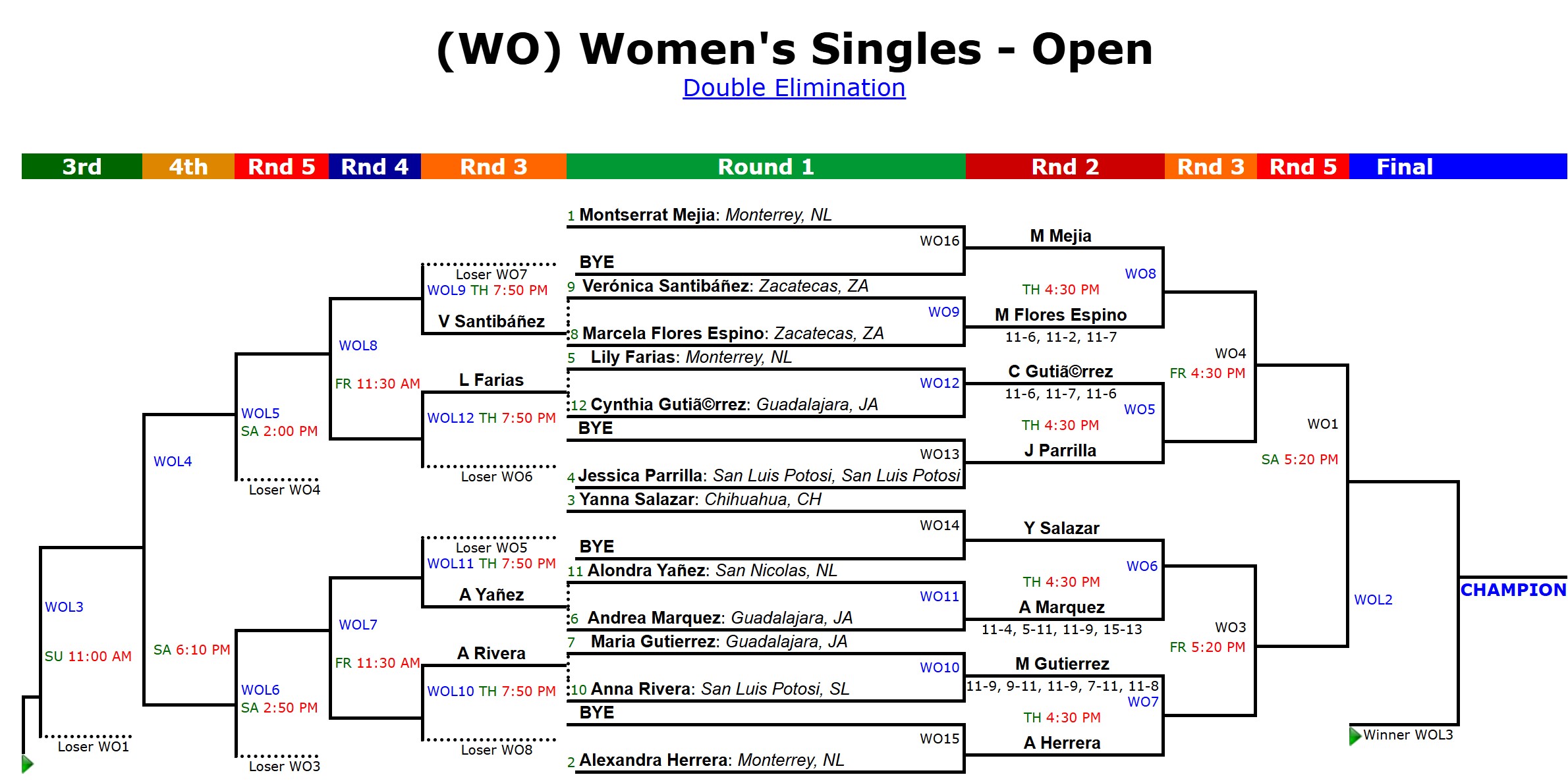 Romano Sports Events is broadcasting the event for the Federación Mexicana de Raquetbol. The broadcast is only on YouTube and the playlist below is updated at the end of each day of competition. FMR has been sharing individual matches from their Facebook Page.