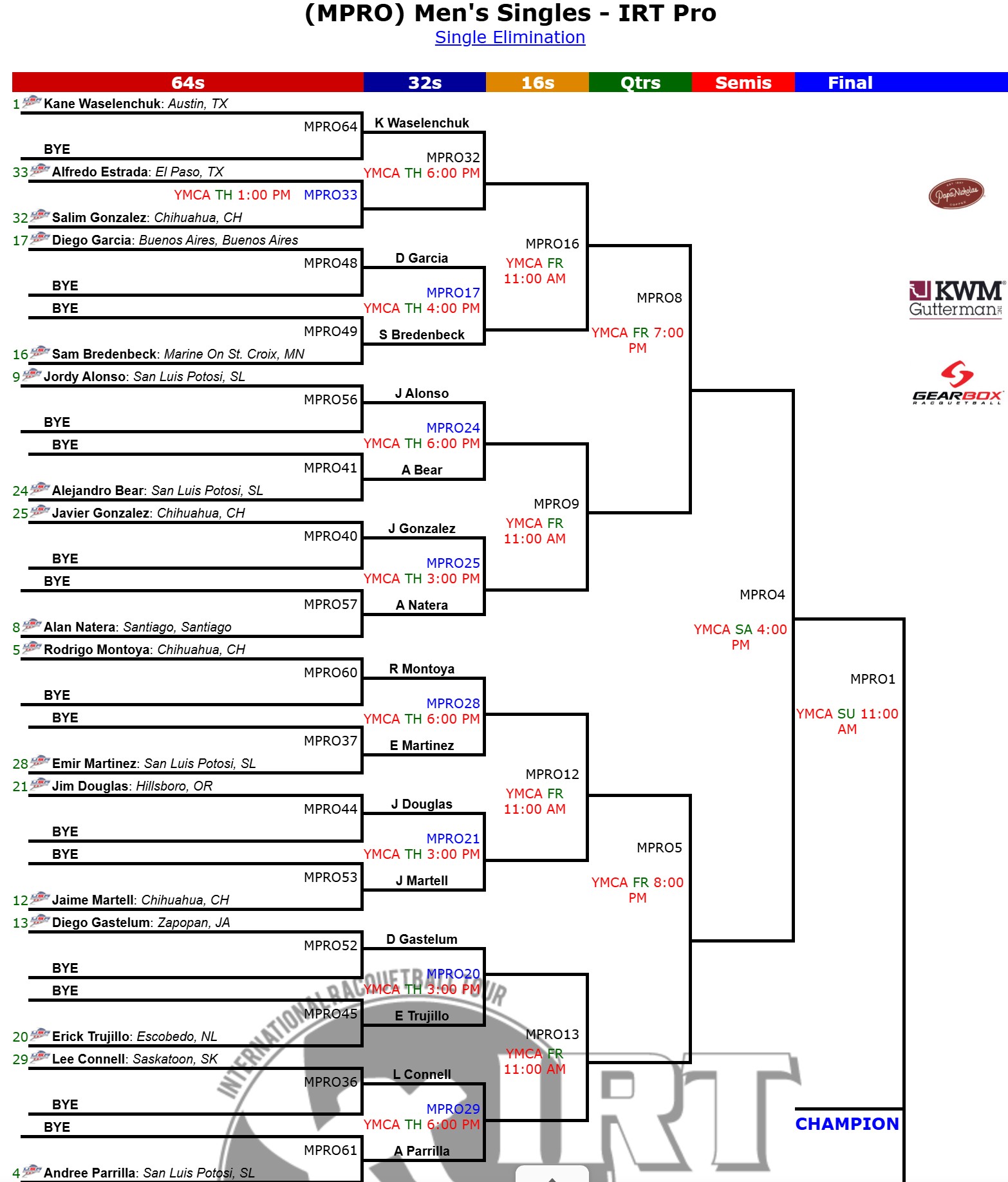 1 vs 32/33 Kane Waselenchuk vs the winner of Gonzalez/Estrada