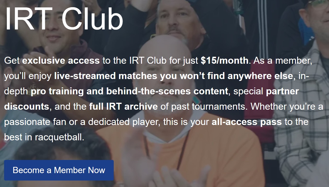 Matches will also be streamed on the IRT Club. Access to these matches (and much more) is available for $15 per month.