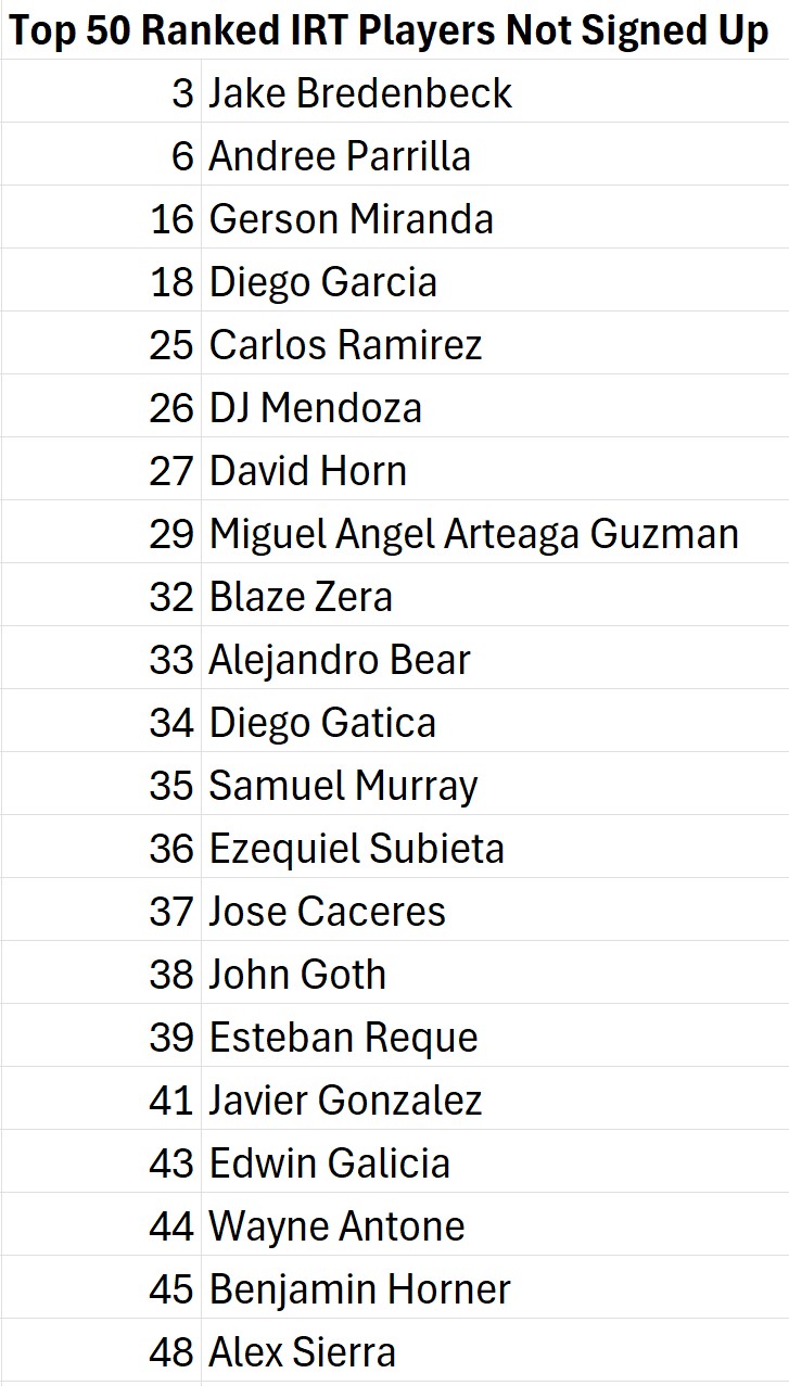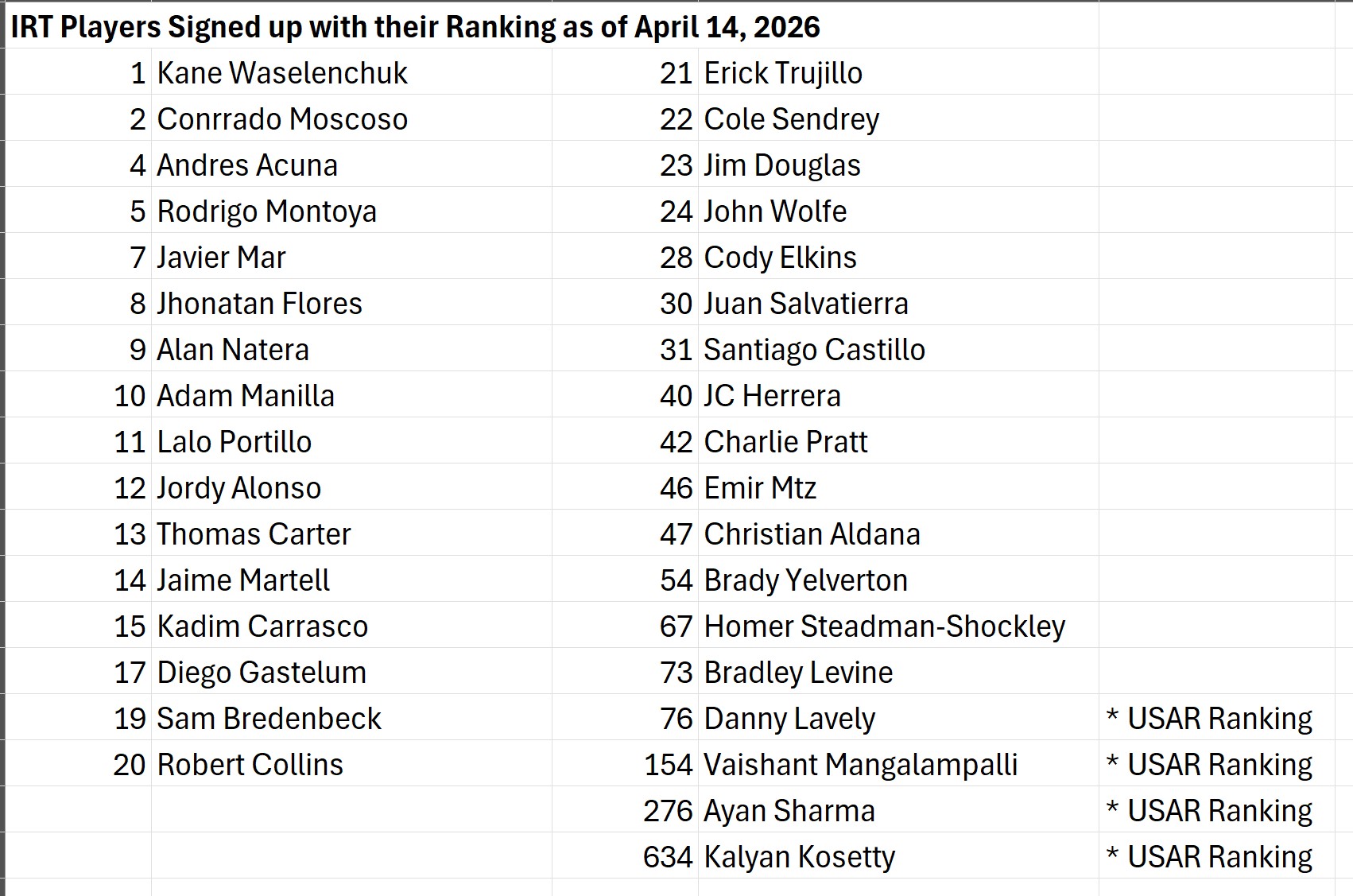 Matches will also be streamed on the IRT Club. Access to these matches (and much more) is available for $15 per month.